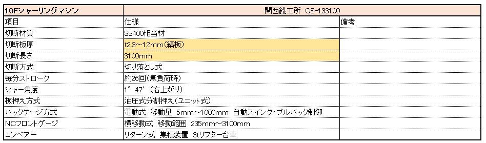 | メーカー 型式 | 板厚(㎜) | 有効切断幅(㎜) | 有効切断長(㎜) | |